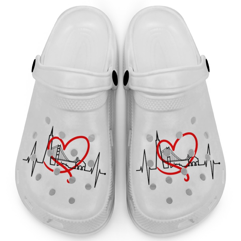 Own fascinating San Francisco Skyline Heartbeat California Lover Clogs or see more Clogs products now from Printblur shop to enjoy your shopping time!