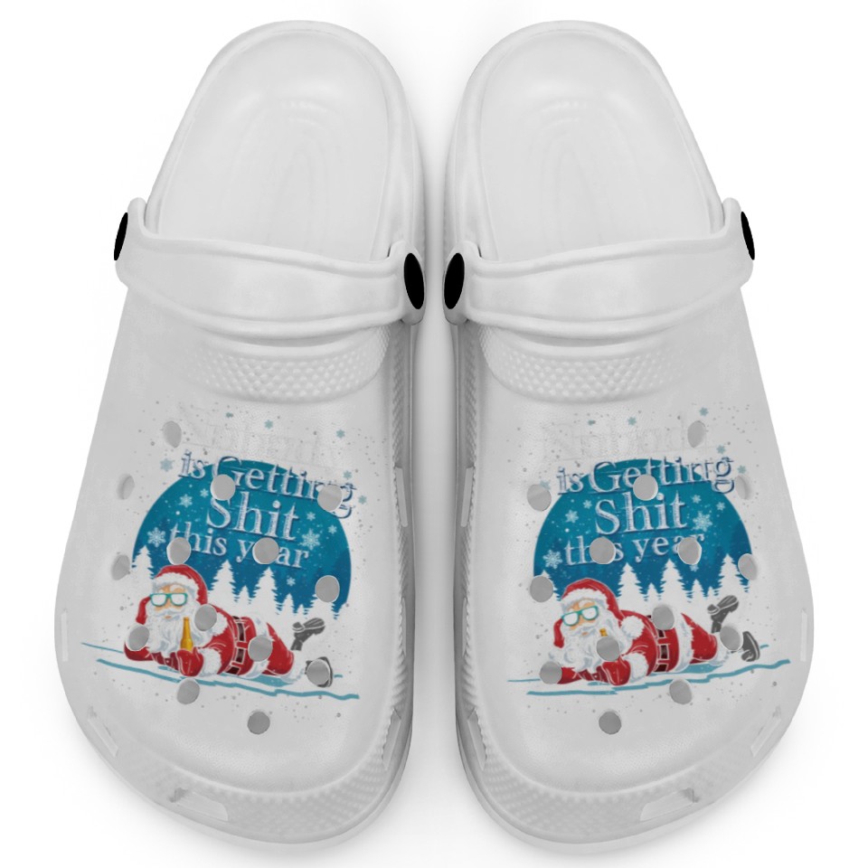 The product unique design you searched for is Santa 2020 Claus Ugly Bad Santa Clogs For Kids WHITE belong theme Clogs at Printblur