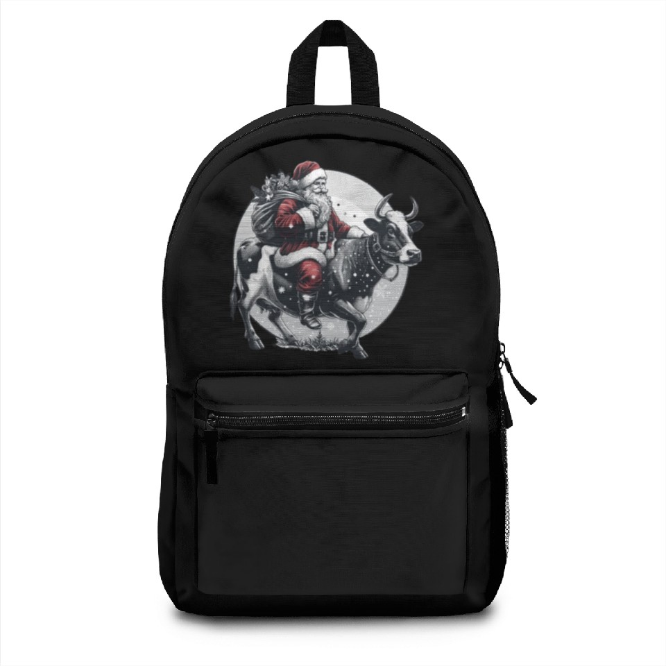 Buy eye-catching Santa Claus on Cow for Christmas farm Backpacks or see more Backpacks products at Printblur shop now to explore many surprises from our shop!