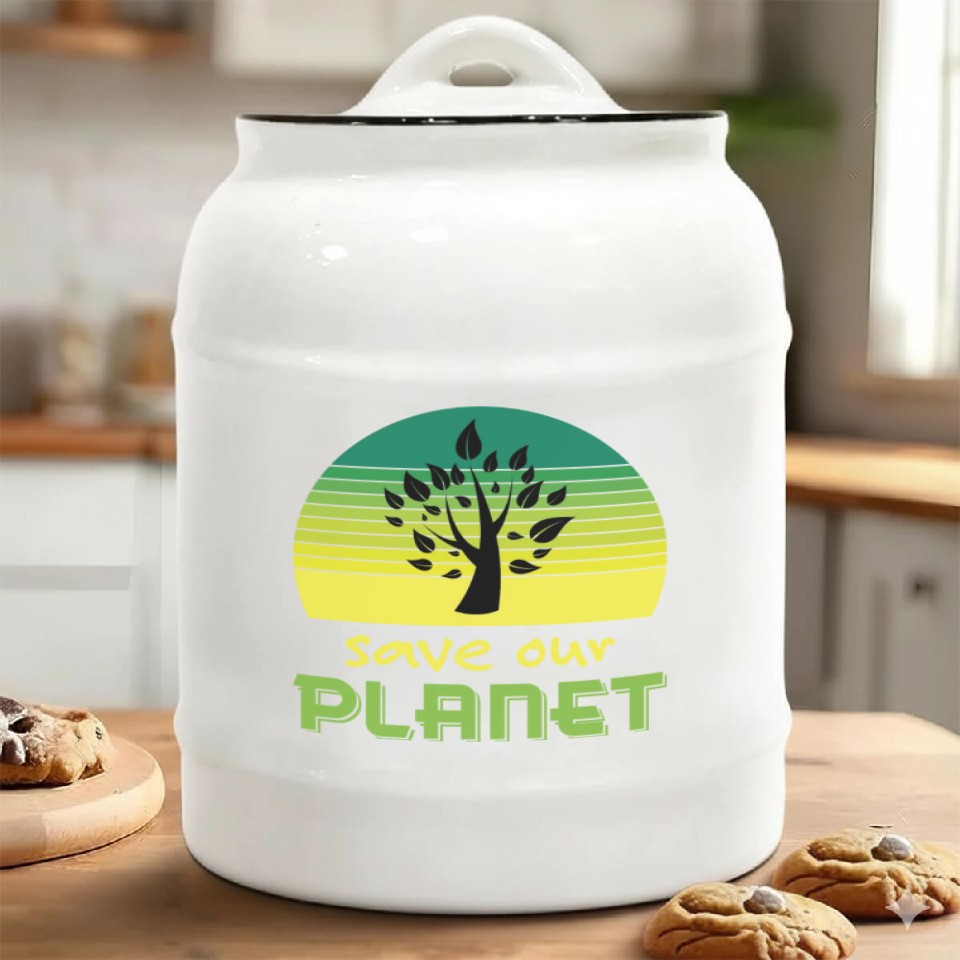 Buy eye-catching Save Our Planet Retro Sunset Green Ceramic Cookie Jars or see more Ceramic Cookie Jars products at Printblur shop now to explore many surprises from our shop!