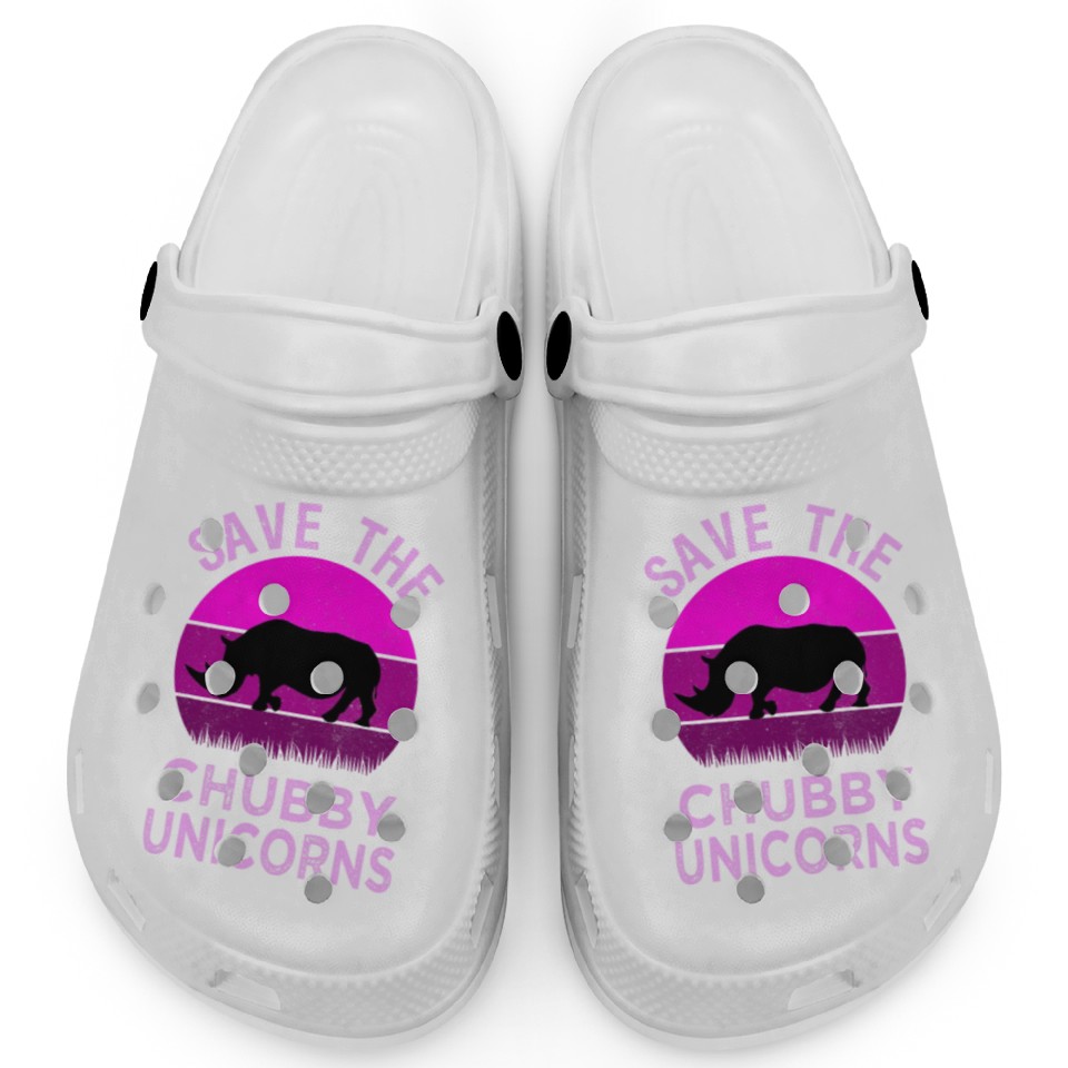 Shop for attractive Save The Chubby Unicorns Retro Style Rhino 3 Clogs or see more Clogs products on https://printblur.com right now!