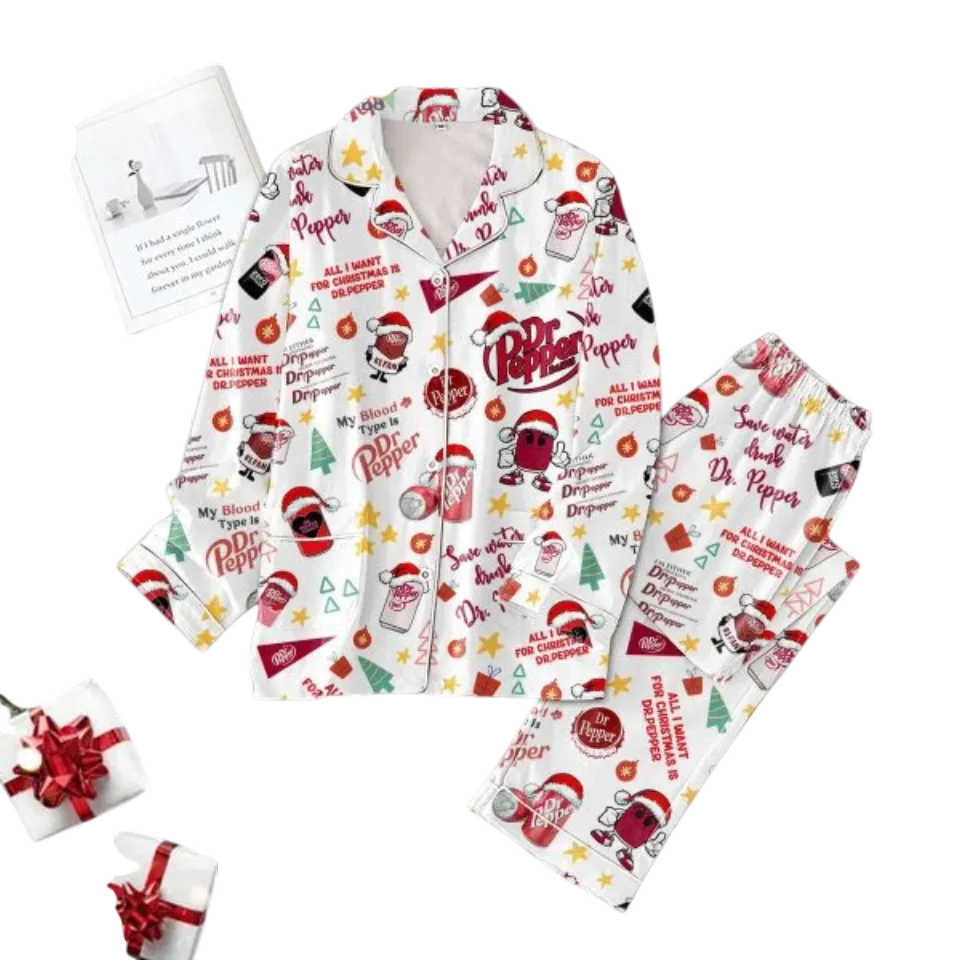 The item hot trend you're looking at is Save Water Drink Dr Pepper Christmas Pajamas Set For Kids belong theme Adult Pajamas Sets at Printblur