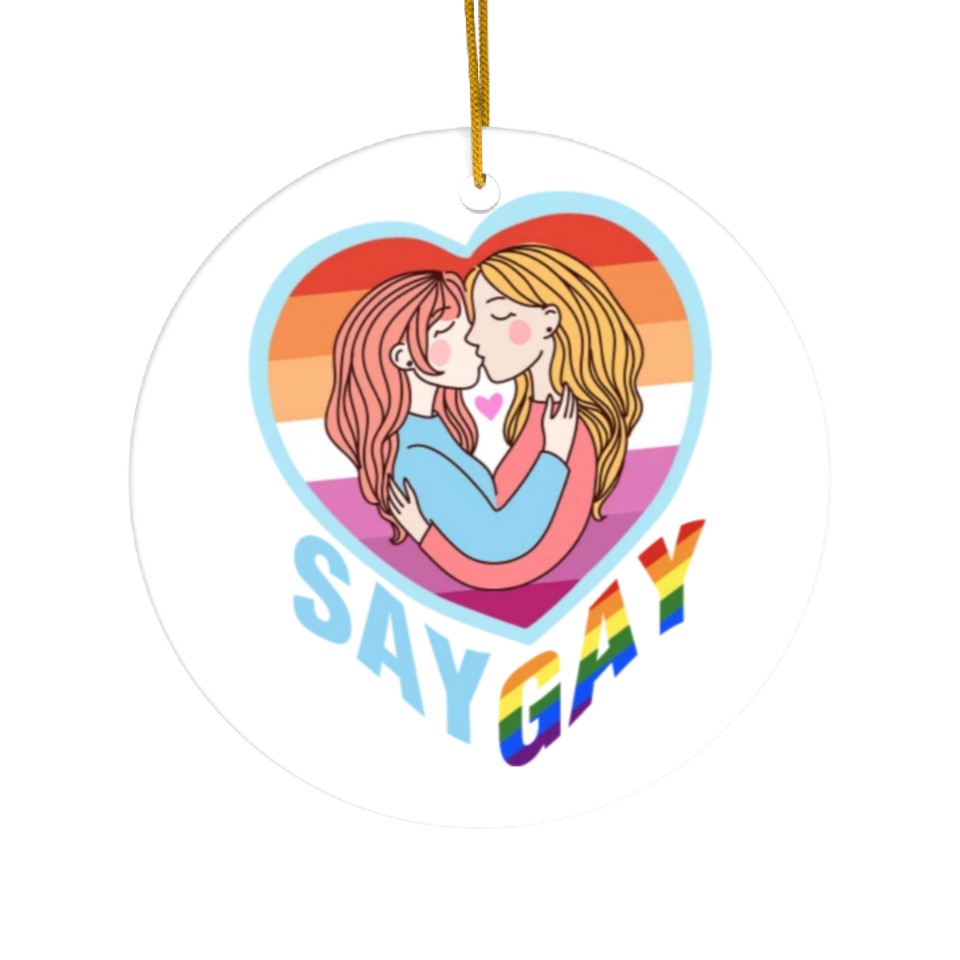 The item hot trend you're looking at is Say Gay Lesbian Couple Ceramic Ornaments For WHITE belong theme Ceramic Ornaments at Printblur