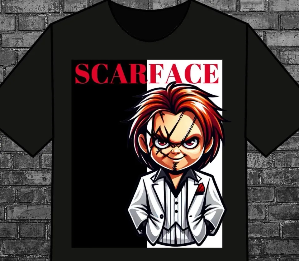Buy stunning Scarface Chucky inspired Custom Black T-shirt Tee Top or see more T-Shirts products at Printblur right now to receive many amazing discounts!