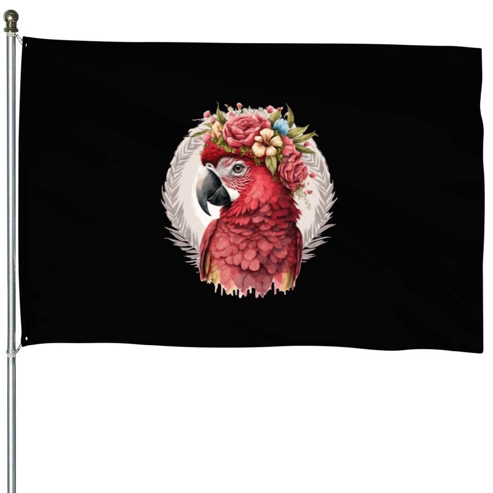 You're searching for a one-of-a-kind product Scarlet Macaw Parrot Watercolor Bird Flower Crown House Flags For Black belong theme House Flags at Printblur
