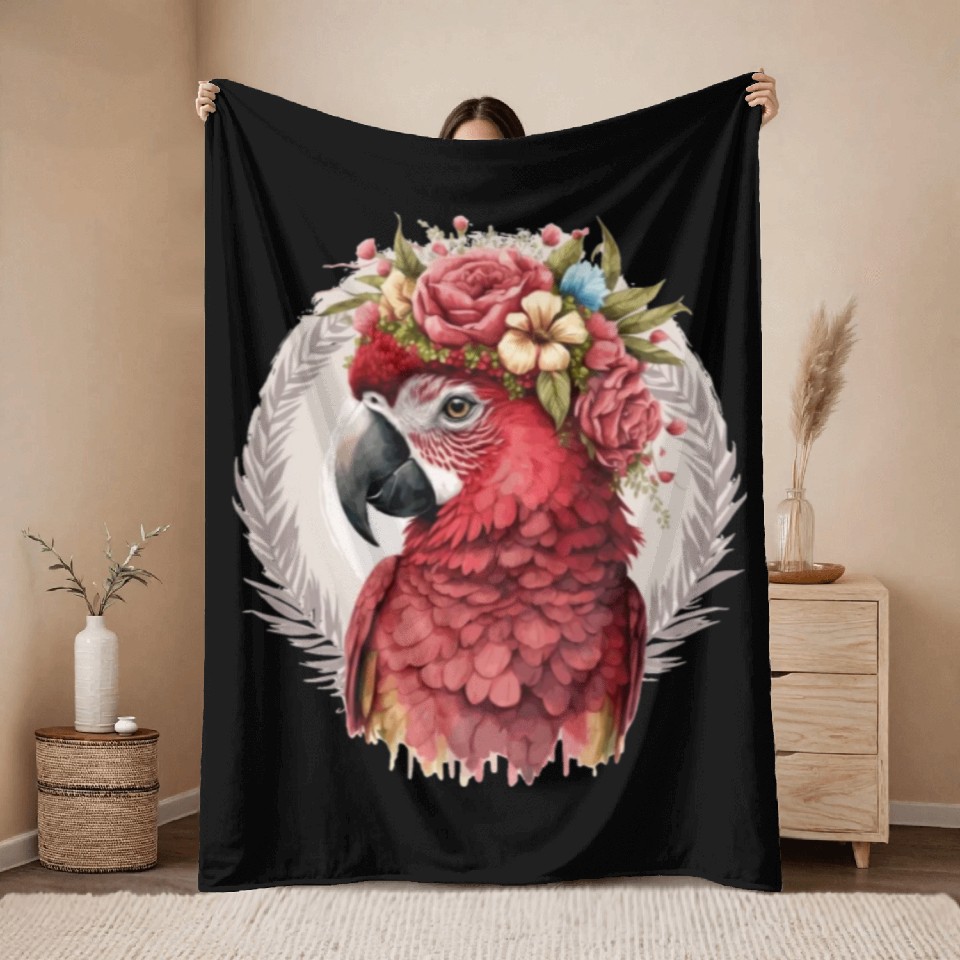 You are viewing an exclusive and elegant product Scarlet Macaw Parrot Watercolor Bird Flower Crown Throw Blankets For Black belong theme Throw Blankets at Printblur