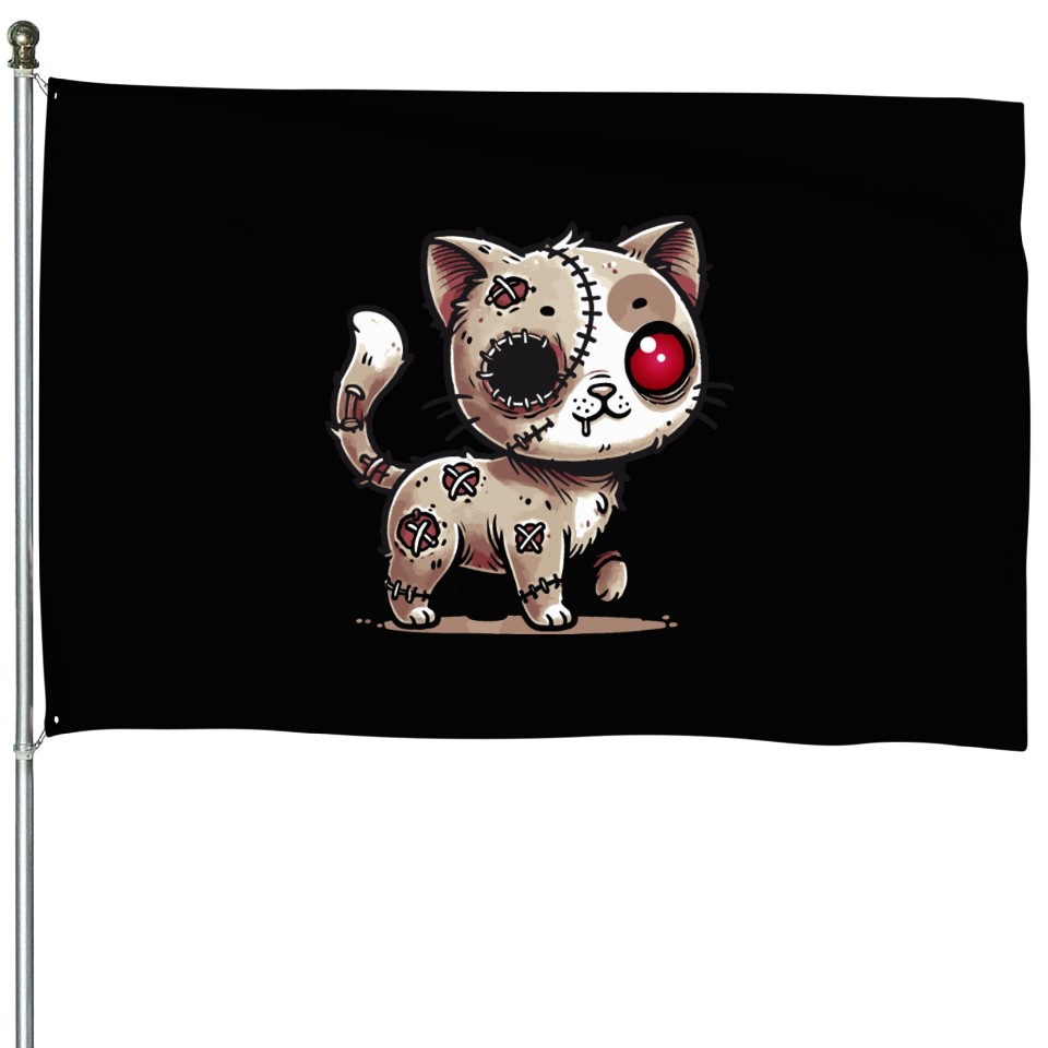 Shop for impressive scary zombie kawaii cat for halloween fun House Flags or see more House Flags products right now on Printblur to enjoy your happiness!
