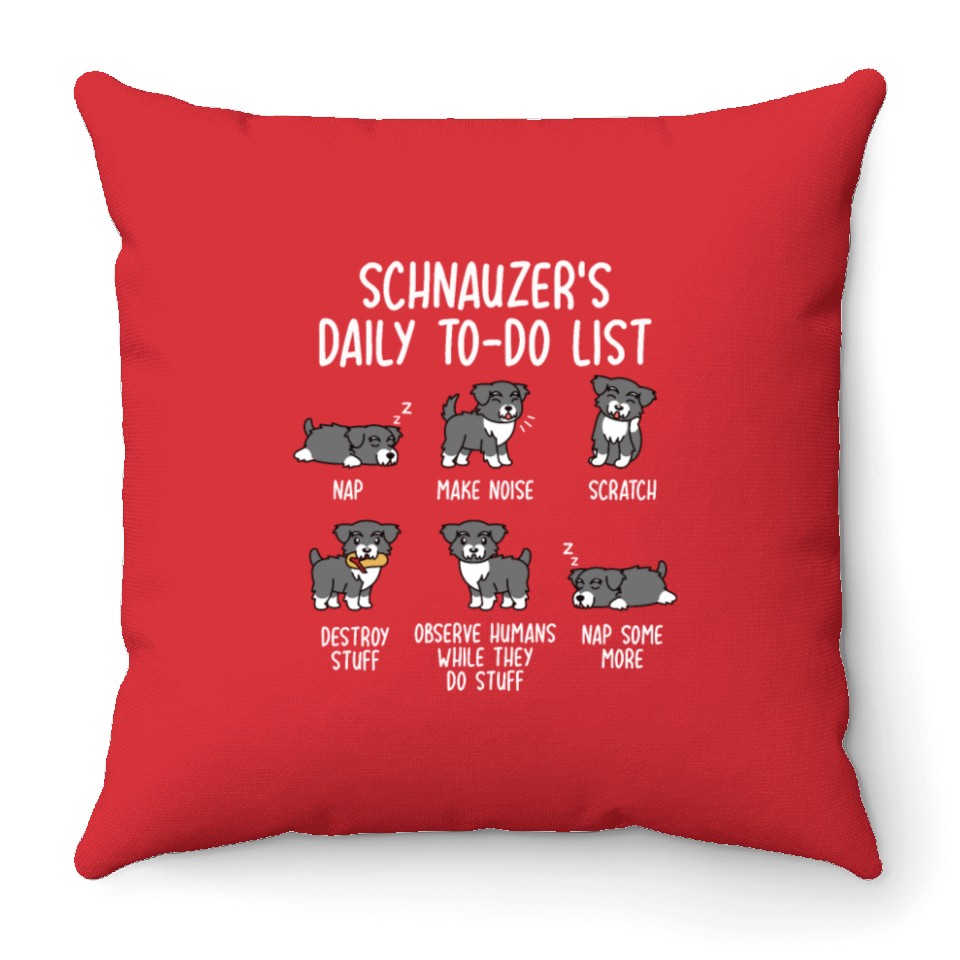 Buy eye-catching Schnauzer Daily To Do List Throw Pillows or see more Throw Pillows products at Printblur shop now to explore many surprises from our shop!