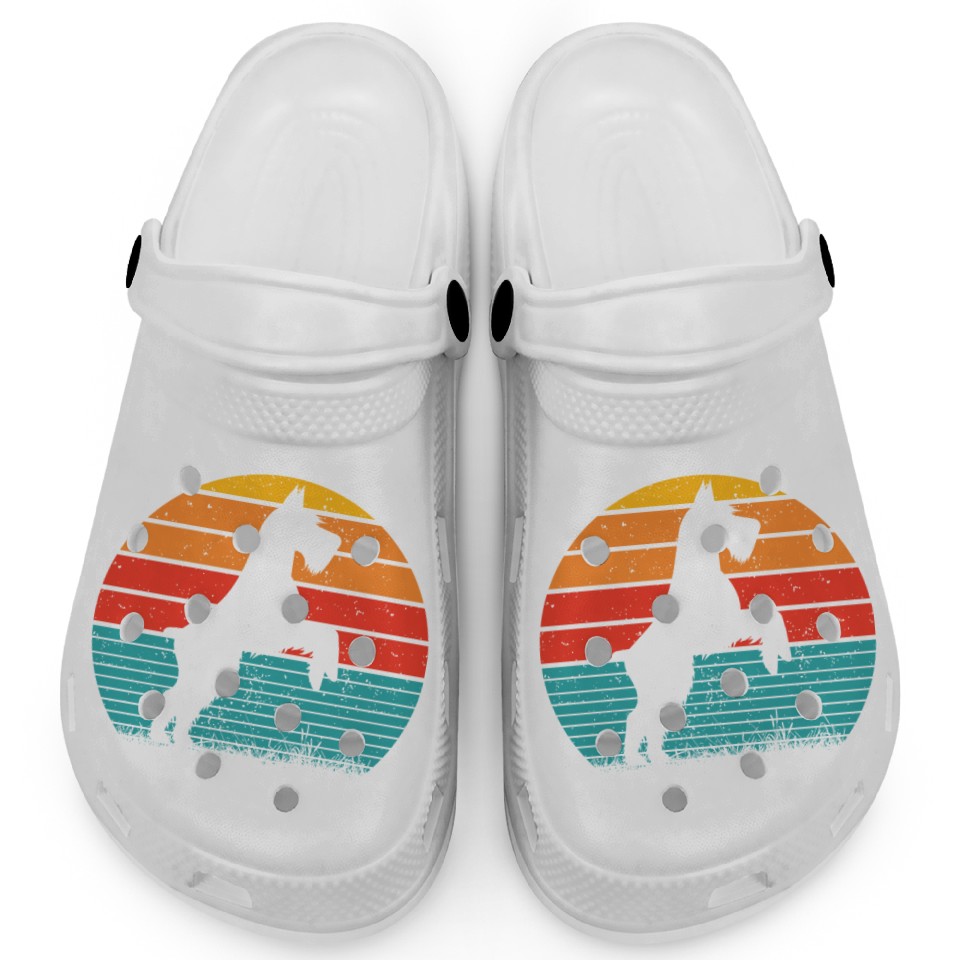 The item hot trend you're looking at is Schnauzer Dog Sunset Clogs For Kids WHITE belong theme Clogs at Printblur