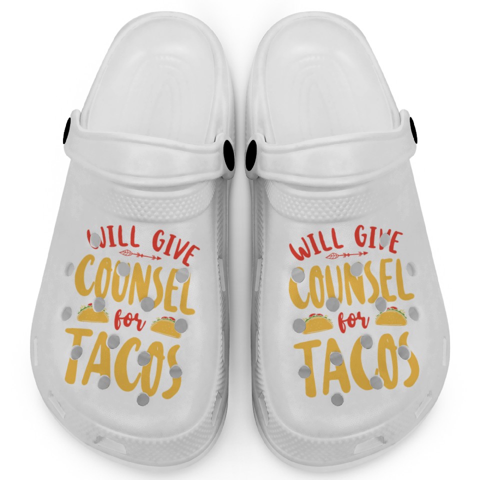 You're looking at the eye-catching product School Counselor Taco Will Give Clogs For Kids WHITE belong theme Clogs at Printblur