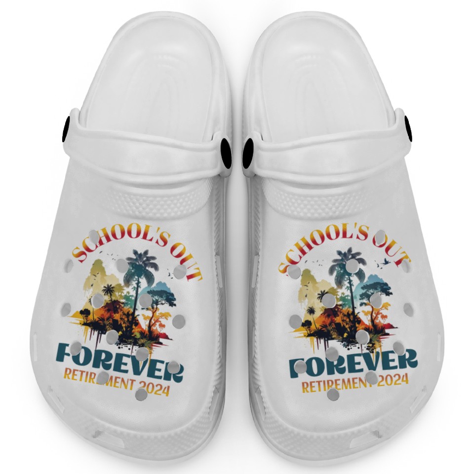 Shop for attractive School's Out Forever Teacher Retirement 2024 Clogs or see more Clogs products on https://printblur.com right now!