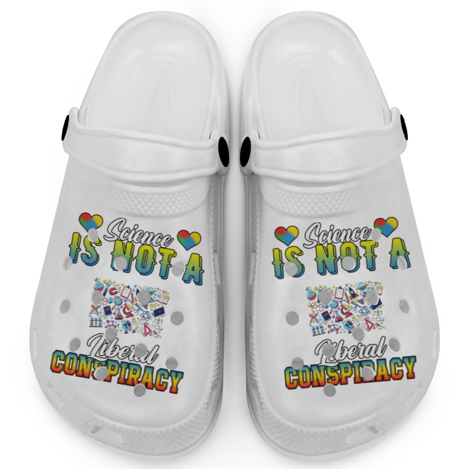 You are shopping for a stunning and trendy product Science Is Not A Liberal Conspiracy Funny Quotes Clogs For Kids WHITE belong theme Clogs at Printblur