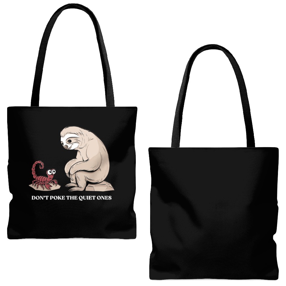 You are shopping for a stunning and trendy product Scorpio Zodiac Sloth Don't Poke The Quiet Ones Tote Bags (AOP) For Black belong theme Tote Bags (AOP) at Printblur
