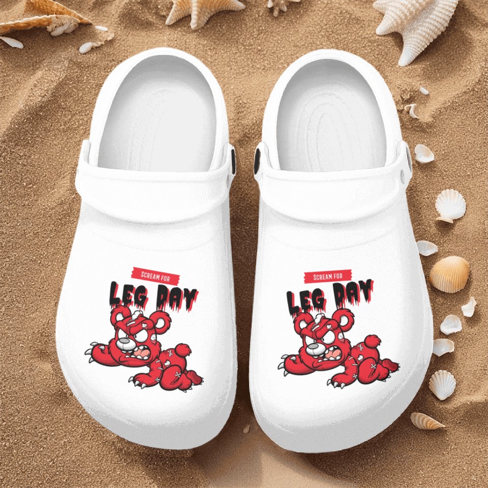 You are viewing an exclusive and elegant product Scream for Leg Day Nurse Clogs For Men WHITE belong theme Nurse Clogs at Printblur