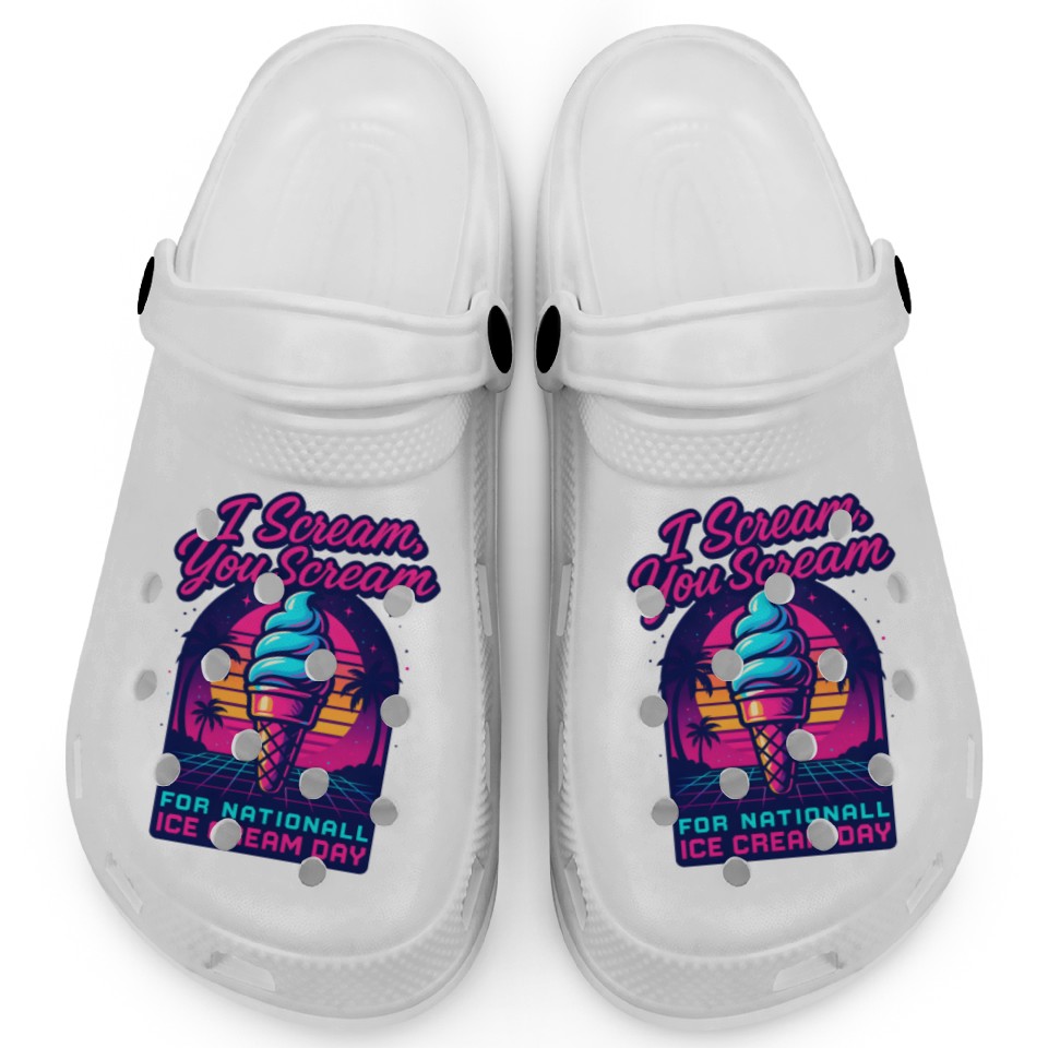 You are shopping for a stunning and trendy product Scream, You Scream National Ice Cream Day Retro Clogs For Kids WHITE belong theme Clogs at Printblur