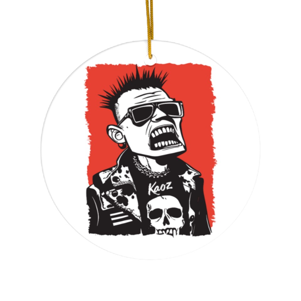 You're searching for a one-of-a-kind product Screaming Punk Rocker with Skull Ceramic Ornaments For WHITE belong theme Ceramic Ornaments at Printblur