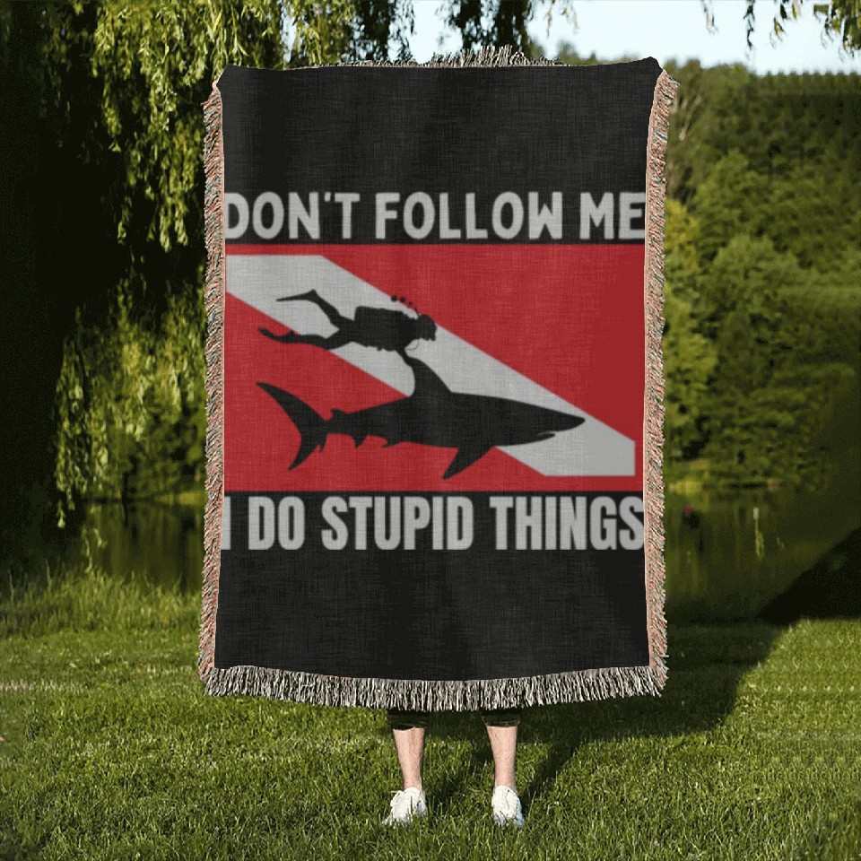 Shop for attractive Scuba Diving Shark Dont Follow Me I Do Stupid Woven Blankets or see more Woven Blankets products on https://printblur.com right now!