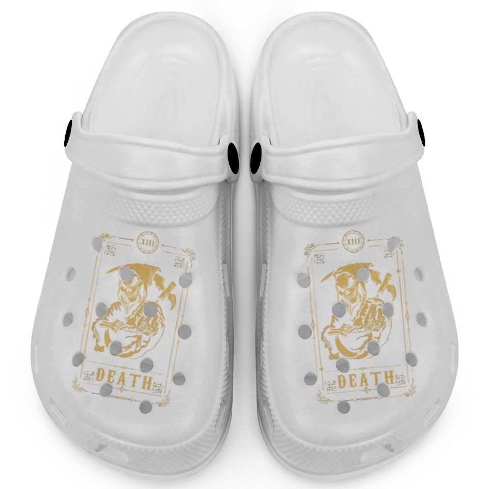 You are viewing one of the trendiest products Scythe Skeleton Tarot Card Halloween Clogs For Kids WHITE belong theme Clogs at Printblur