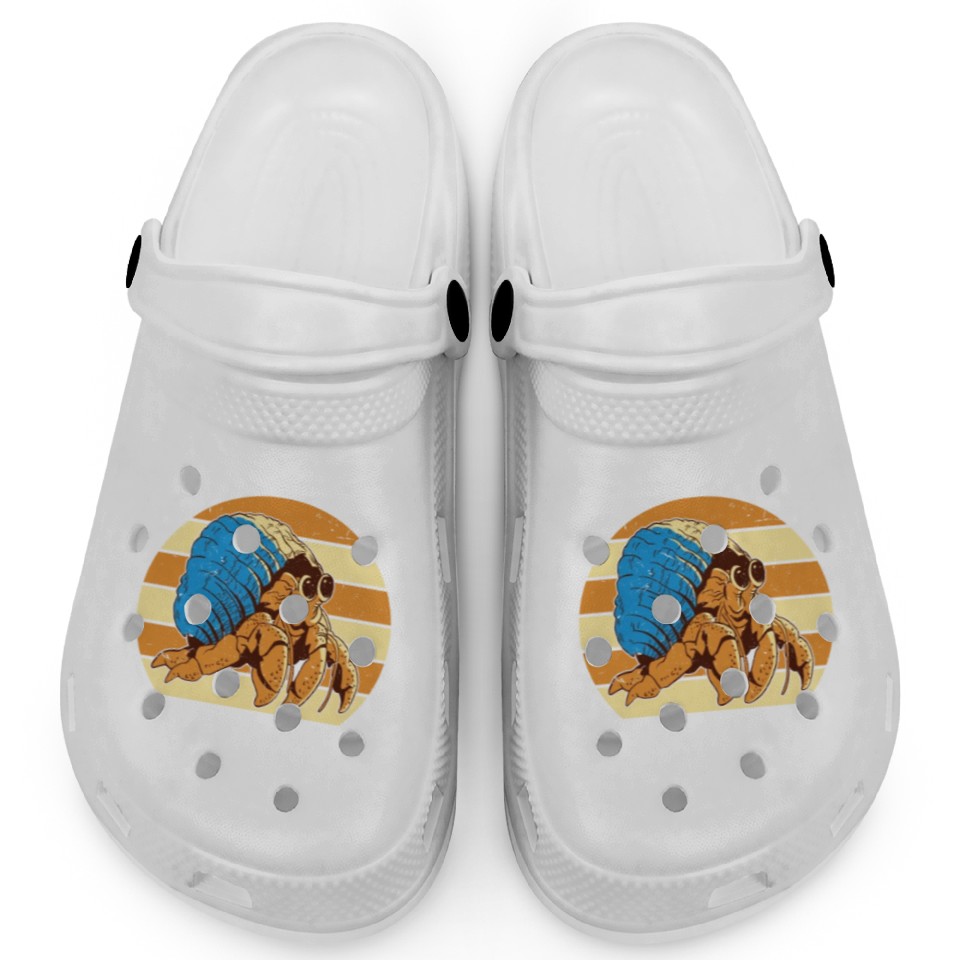 You are viewing an exclusive and elegant product Sea Creature Seafood Shells Hermit Crab Lover Clogs For Kids WHITE belong theme Clogs at Printblur