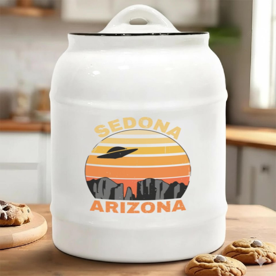 Buy eye-catching Sedona Arizonna Retro Sunset and UFO Ceramic Cookie Jars or see more Ceramic Cookie Jars products at Printblur shop now to explore many surprises from our shop!