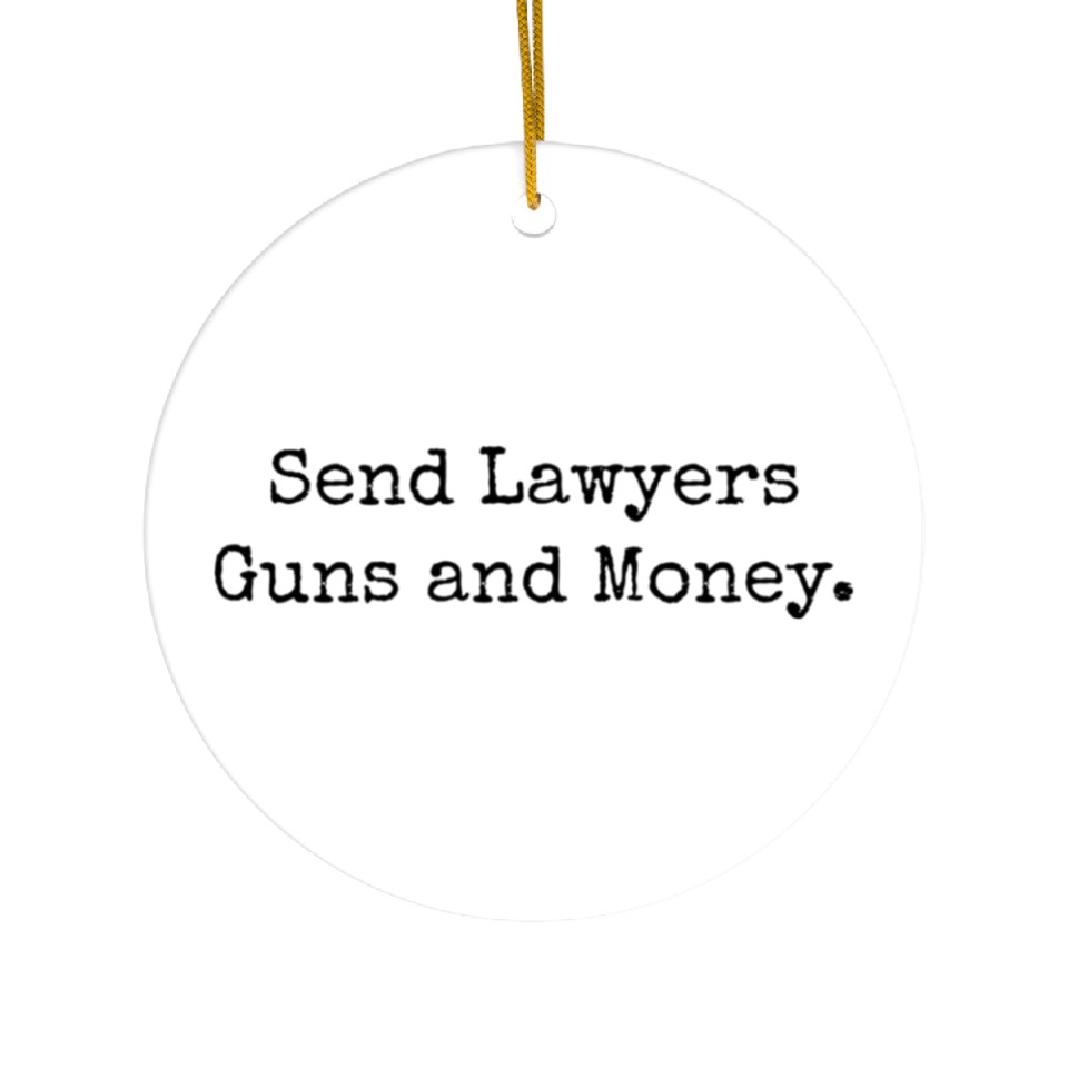 Shop for impressive Send Lawyers Guns And Money Ceramic Ornaments or see more Ceramic Ornaments products right now on Printblur to enjoy your happiness!