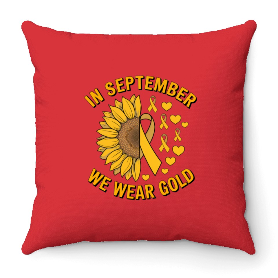 Shop for attractive September We Wear Gold Childhood Cancer Awareness Throw Pillows or see more Throw Pillows products on https://printblur.com right now!