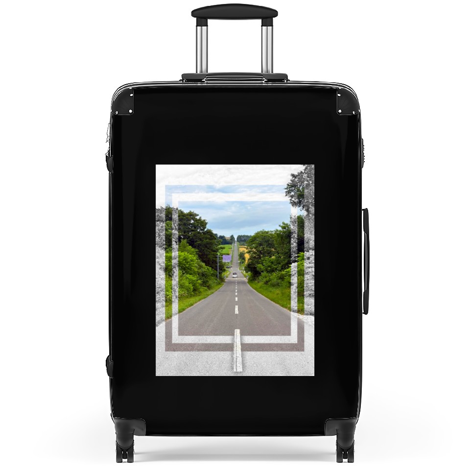 You're taking a peek at the product Serene Country Road Scenic Print Suitcases For Black belong theme Suitcases at Printblur