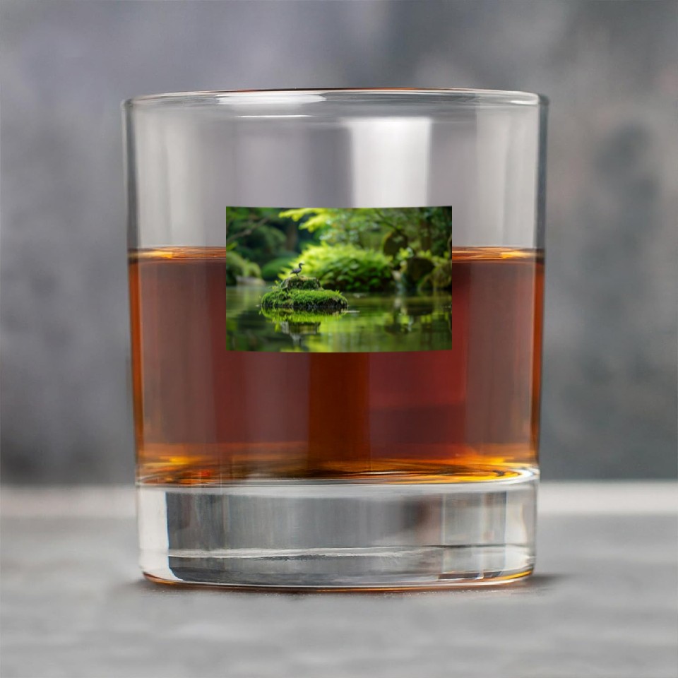 You are shopping for a stunning and trendy product Serene Pond with Bird on Mossy Rock Rock Glasses For belong theme Rock Glasses at Printblur