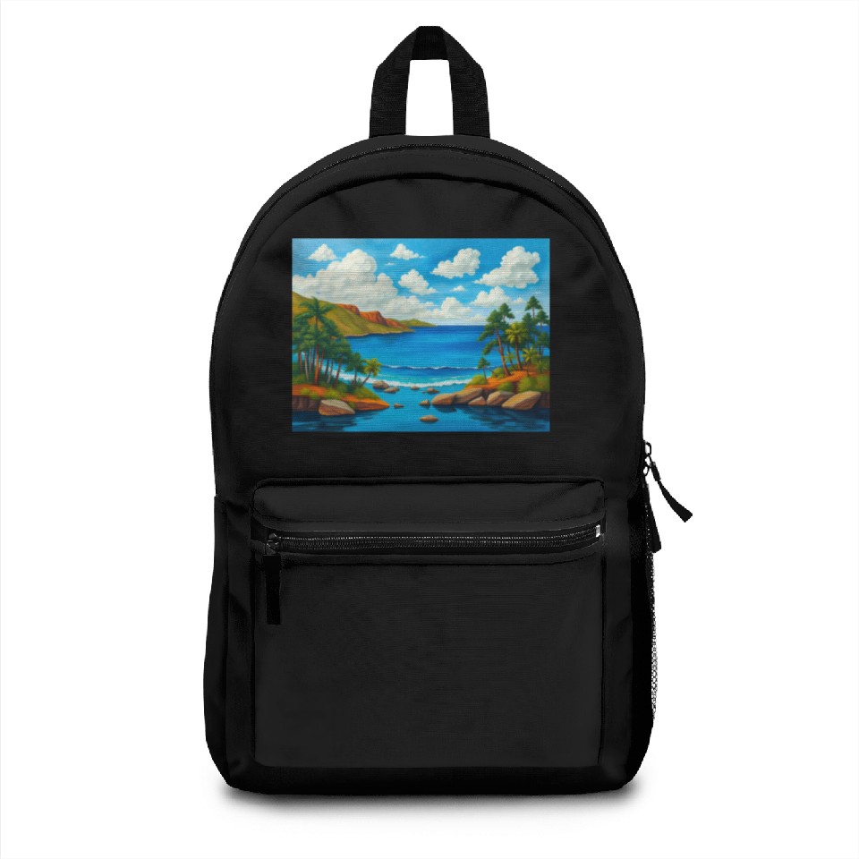 You are viewing an exclusive and elegant product Serene Sunrise Over the Sea Backpacks For Black belong theme Backpacks at Printblur