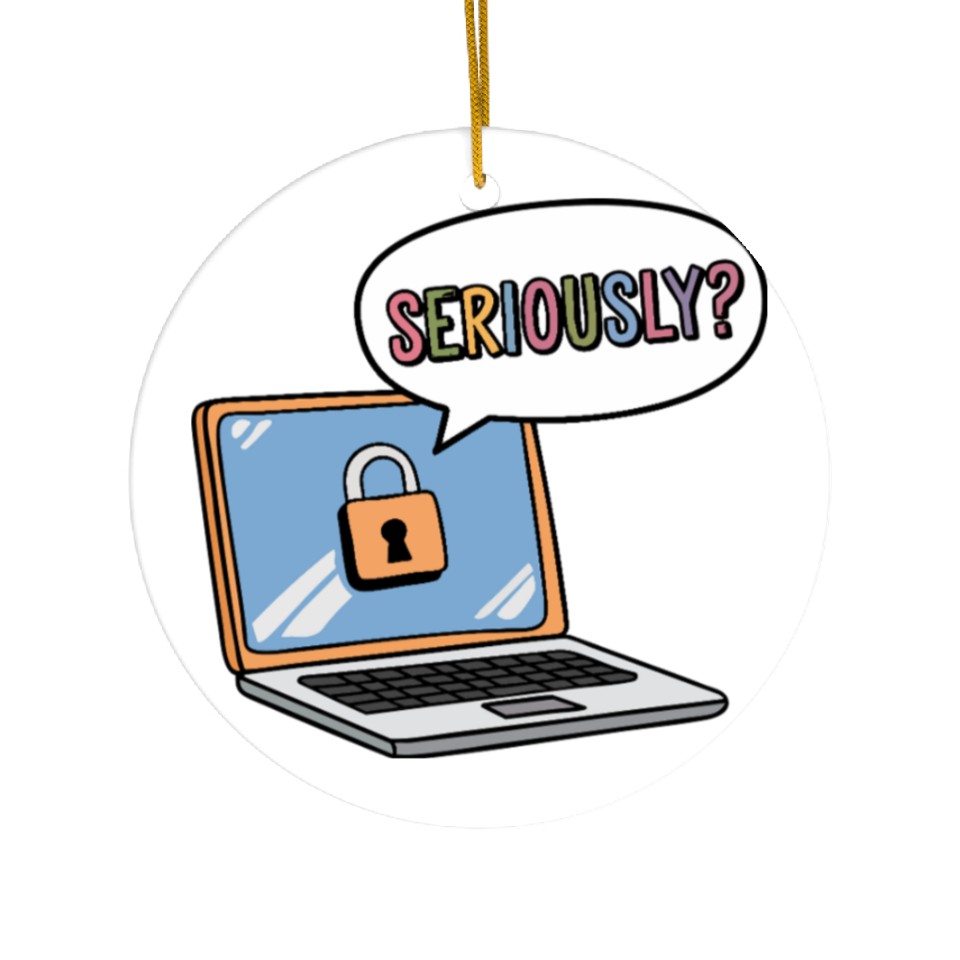 Buy eye-catching SERIOUSLY? a cartoon laptop with a lock icon Ceramic Ornaments or see more Ceramic Ornaments products at Printblur shop now to explore many surprises from our shop!