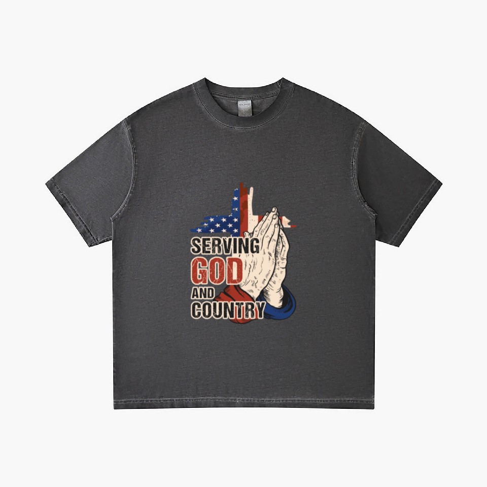 You're looking at the eye-catching product Serving God And Country US Flag Cross Patriotic Ch Gradient T Shirts For Men Washed Black belong theme Gradient T-Shirts at Printblur