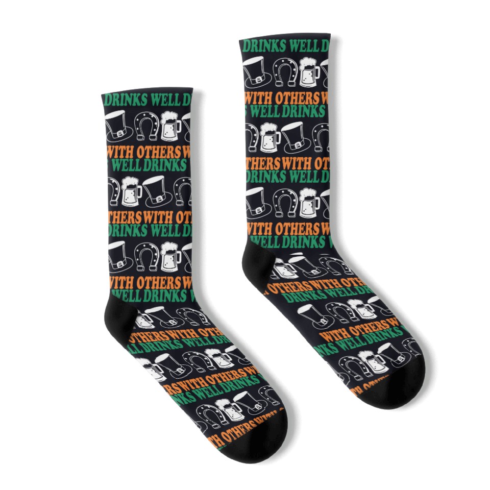 Shop for attractive Shamrock Drinks Well With Others St Patrick's Day Socks or see more Socks products on https://printblur.com right now!