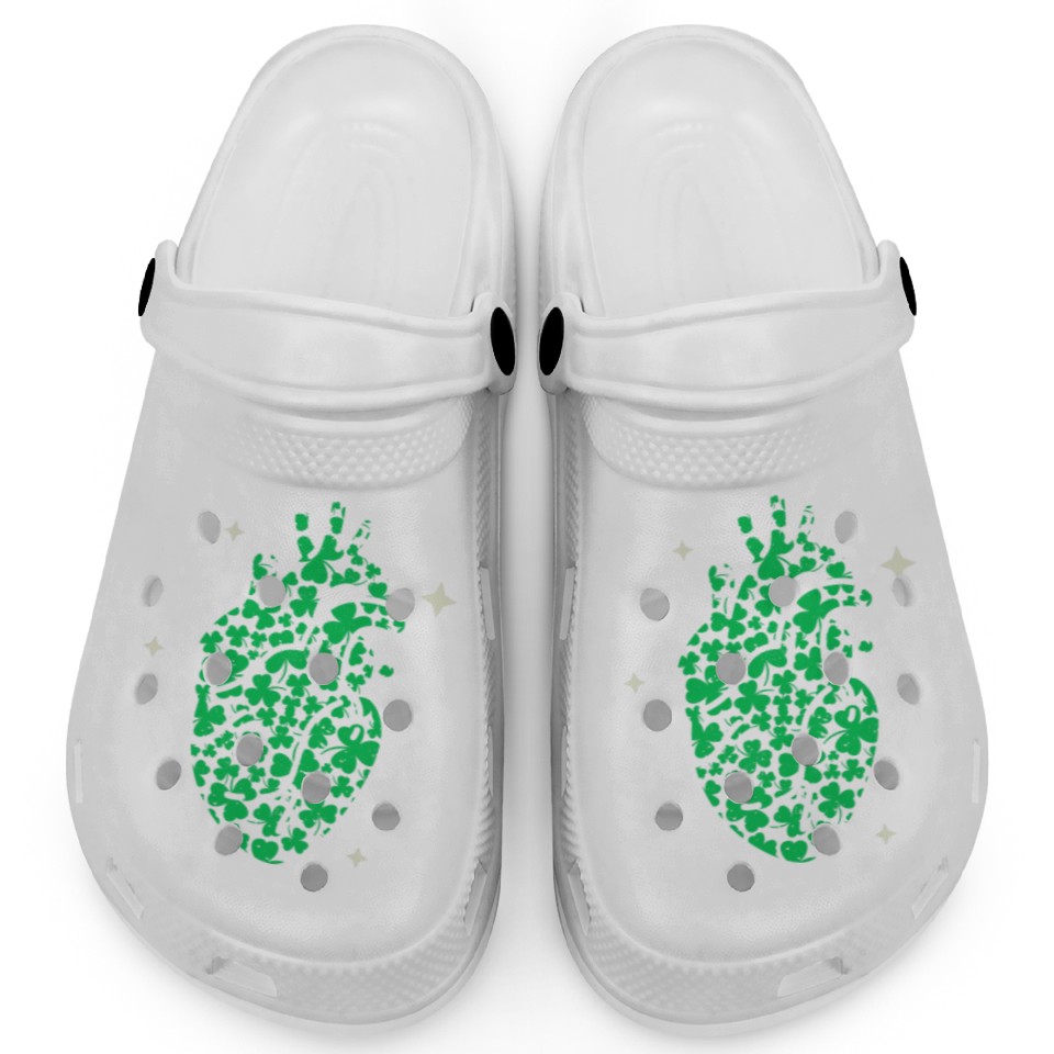 You're taking a peek at the product Shamrock Heart Cardiac Nurse St Patricks Day Clogs For Kids WHITE belong theme Clogs at Printblur