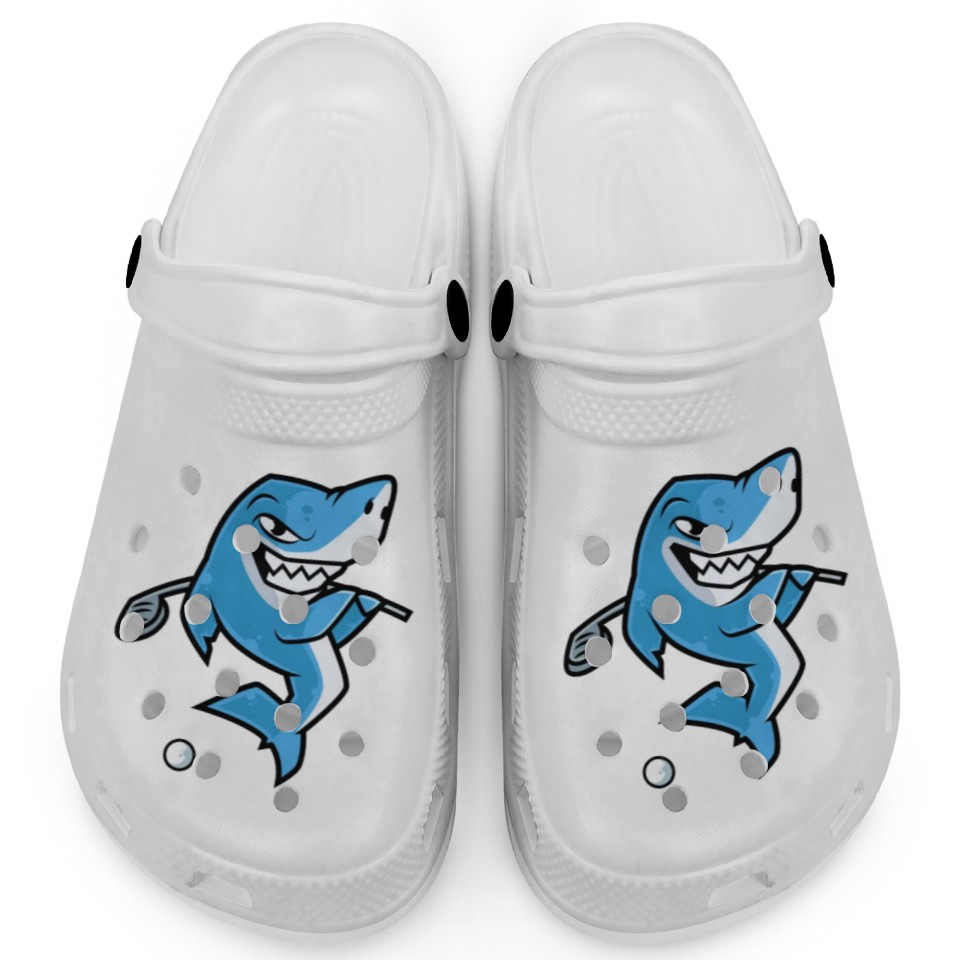 You're looking at the eye-catching product Shark Golf Player Golfer Golfing Funny Kids Boys Clogs For Kids WHITE belong theme Clogs at Printblur