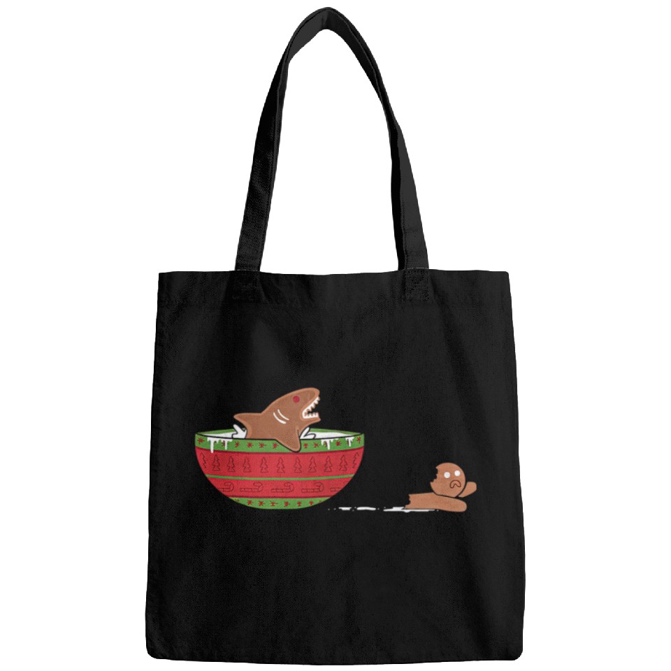 Shark Pet Gingerbread Shark Elf Santa Family Xmas Funny Christmas Jaws Bags
