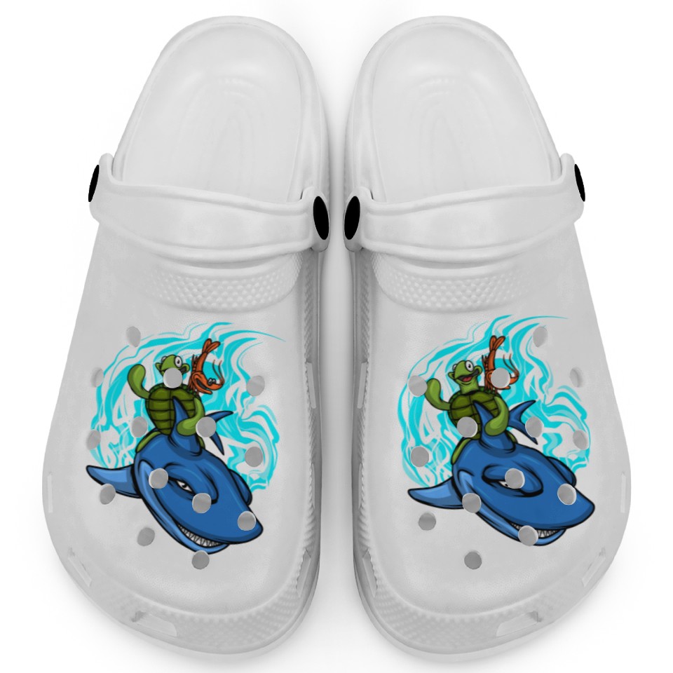 You're searching for a one-of-a-kind product Shark Swims With Turtle And Crab Clogs For Kids WHITE belong theme Clogs at Printblur
