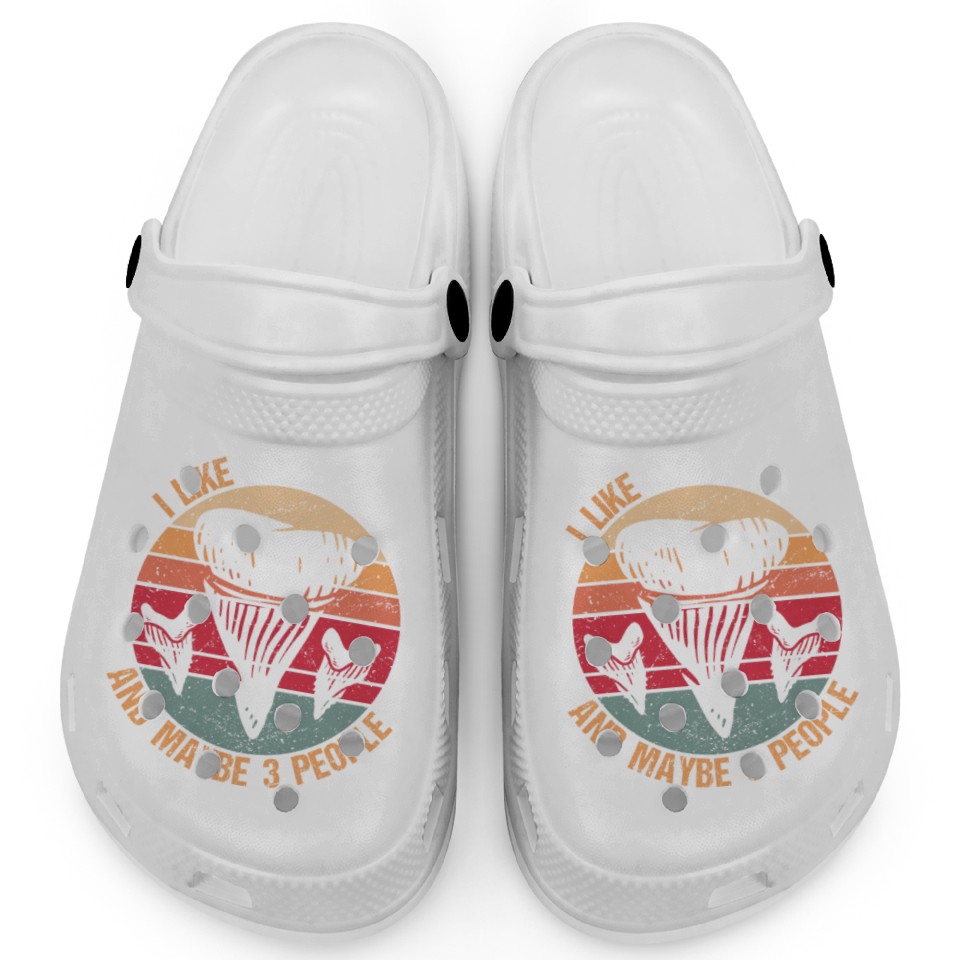 The product unique design you searched for is Shark Teeth Fossil Tooth Collector Clogs For Kids WHITE belong theme Clogs at Printblur