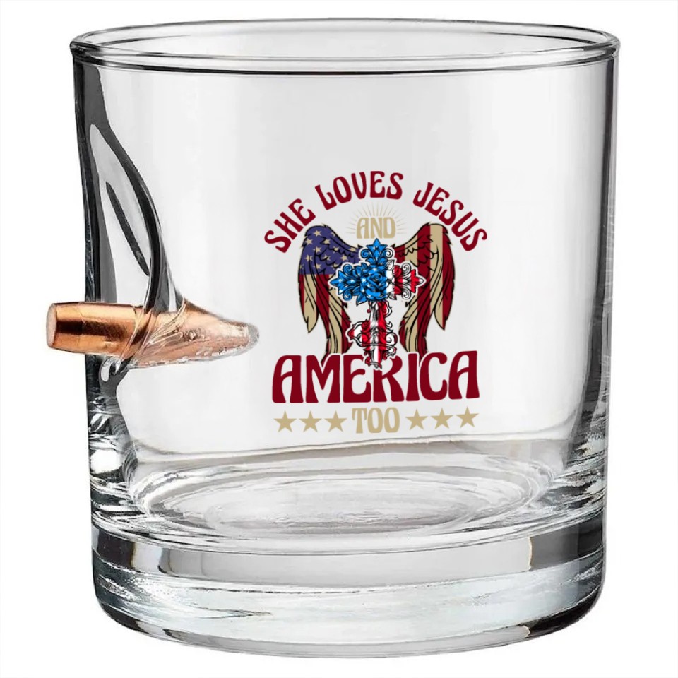 Shop for impressive She loves jesus and America too Bullet Whiskey Glasses or see more Bullet Whiskey Glasses products right now on Printblur to enjoy your happiness!