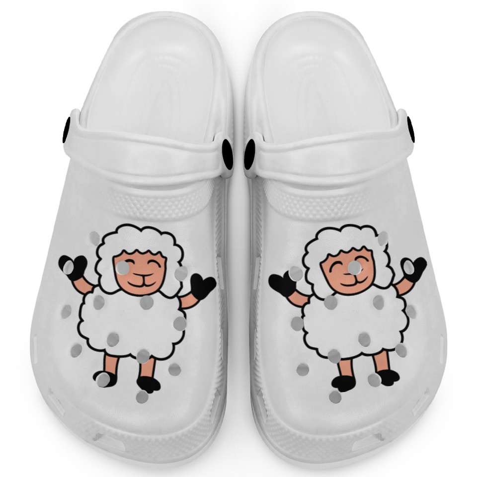 You're taking a peek at the product Sheep Baby Standing Cute Cute Lamb Child Happy Fun Clogs For Kids WHITE belong theme Clogs at Printblur