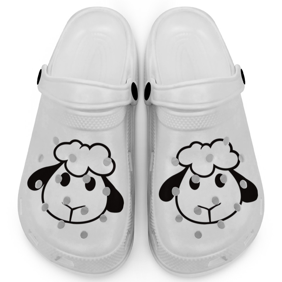 You're taking a peek at the product Sheep Face Head Cute Sweet Lamb Cool Comic Baby Clogs For Kids WHITE belong theme Clogs at Printblur