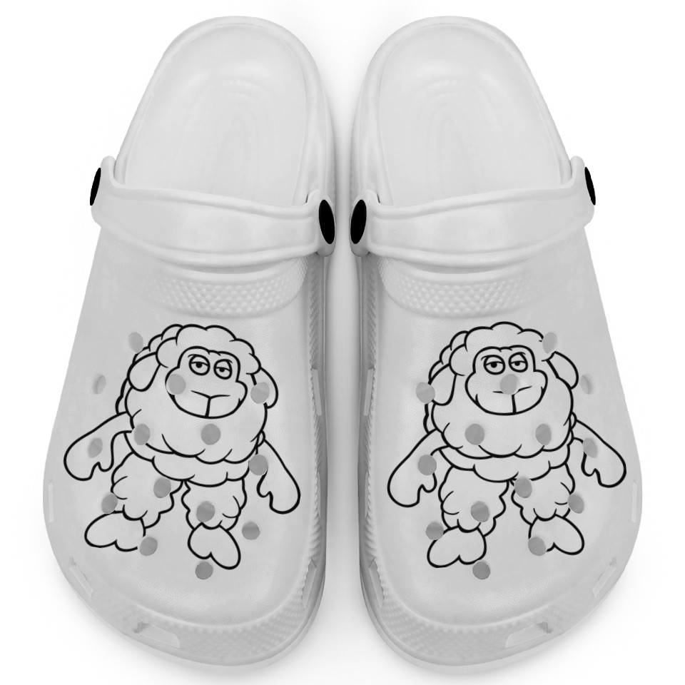 You are seeing a unique and impressive product Sheep Standing Cool Bored Tired Cartoon Comic Cute Clogs For Kids WHITE belong theme Clogs at Printblur