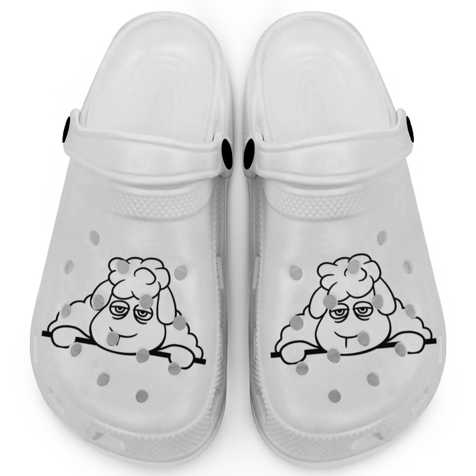 You're taking a peek at the product Sheep Tired Bored Behind Fence Wall Sign Looking Clogs For Kids WHITE belong theme Clogs at Printblur
