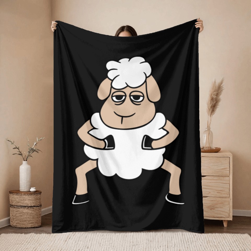 You are shopping for a stunning and trendy product Sheep Tired Bored Look Standing Cute Cool Cartoon Throw Blankets For Black belong theme Throw Blankets at Printblur