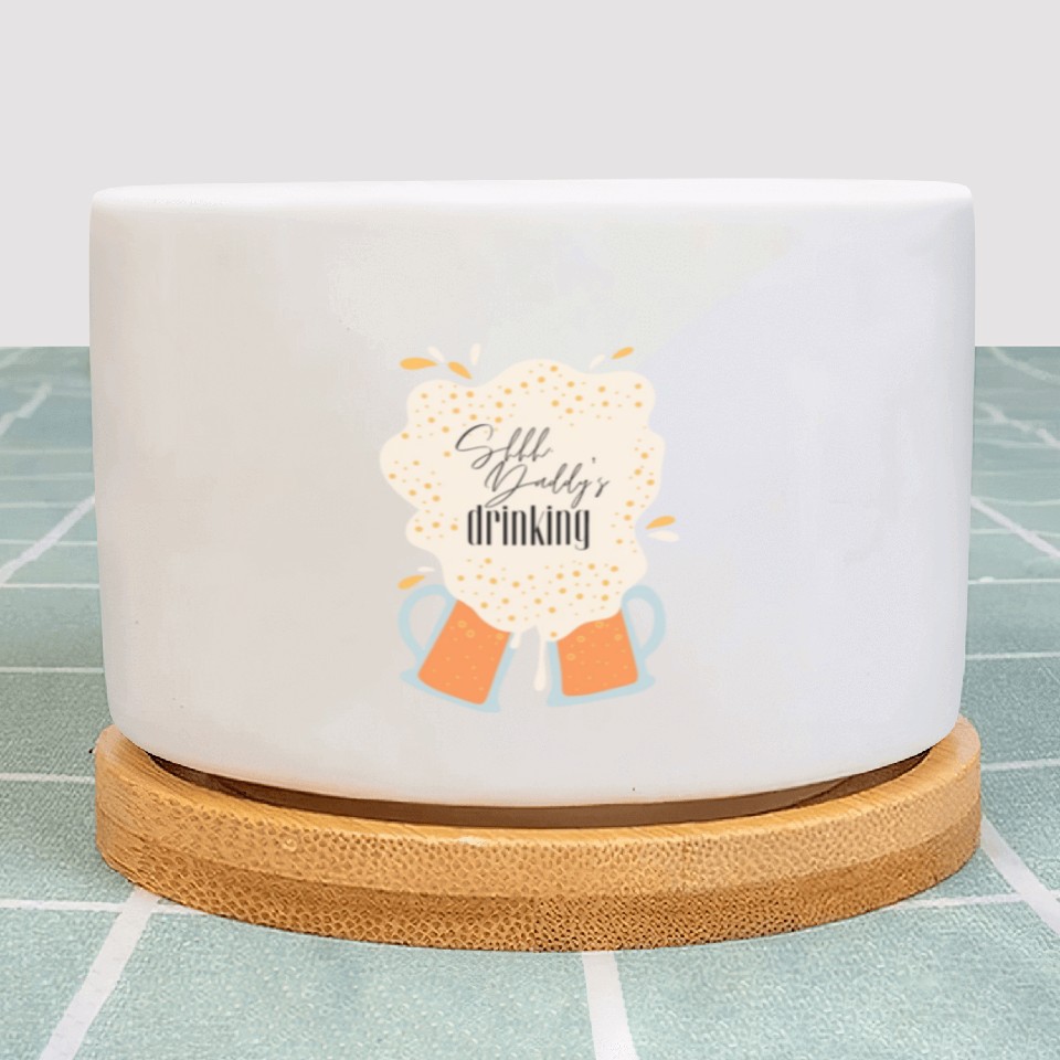 The product unique design you searched for is Shhh, Daddy's Drinking, Funny Dad Beer Quote Gift Plant Pots For WHITE belong theme Plant Pots at Printblur