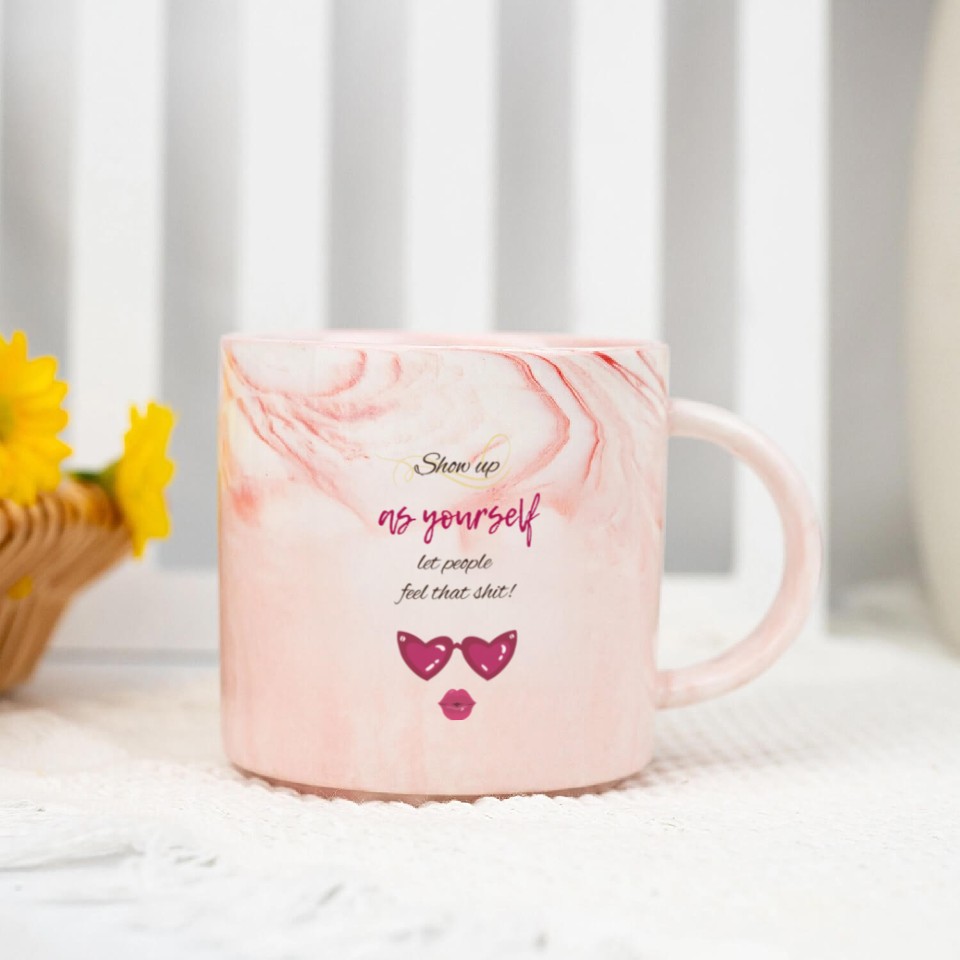 You're looking at the eye-catching product Show Up as Yourself, Let People Feel that Shit Marble Mugs For Pink belong theme Marble Mugs at Printblur