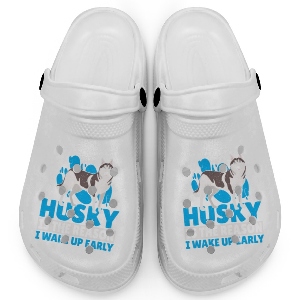 Shop for impressive Siberian Husky Is The Reason I Wake Up Early Clogs or see more Clogs products right now on Printblur to enjoy your happiness!