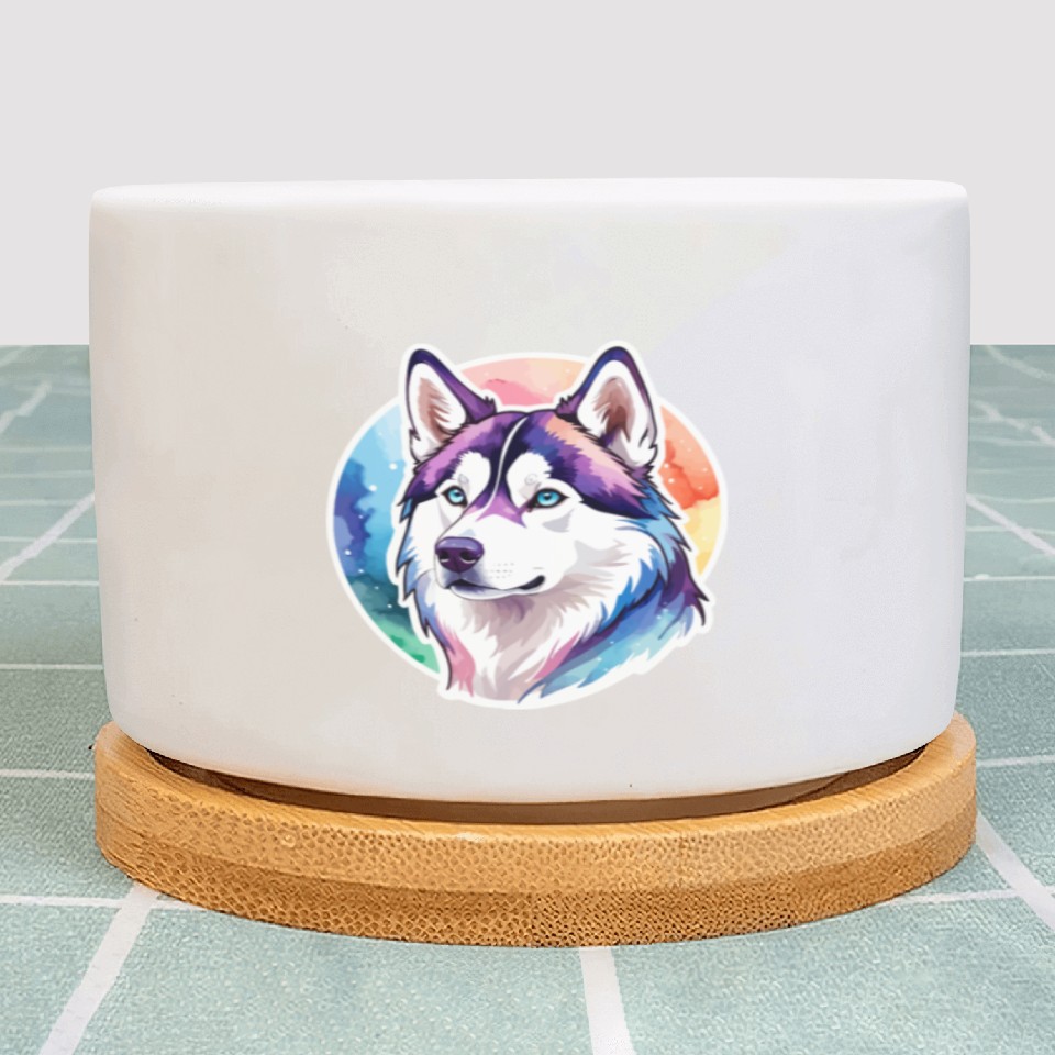 Siberian Husky Watercolor Plant Pots