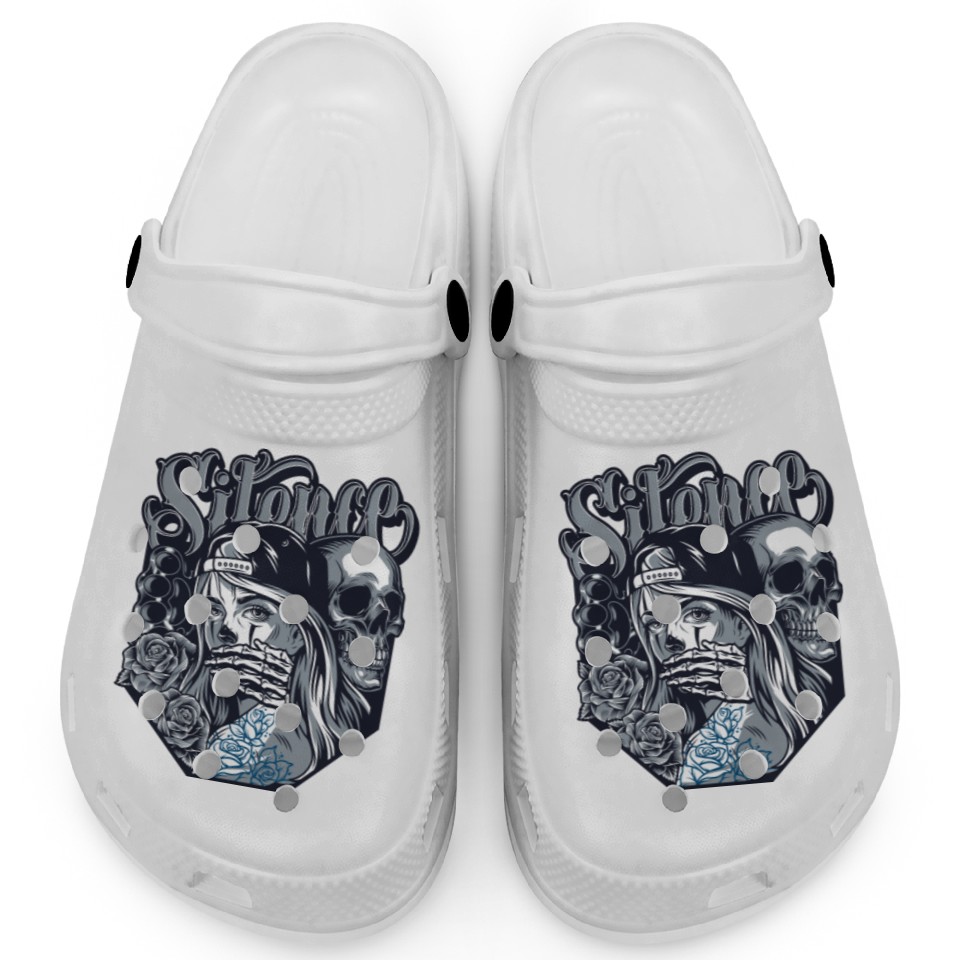 You're looking at the eye-catching product silence Chicano Vintage Design Clogs For Kids WHITE belong theme Clogs at Printblur