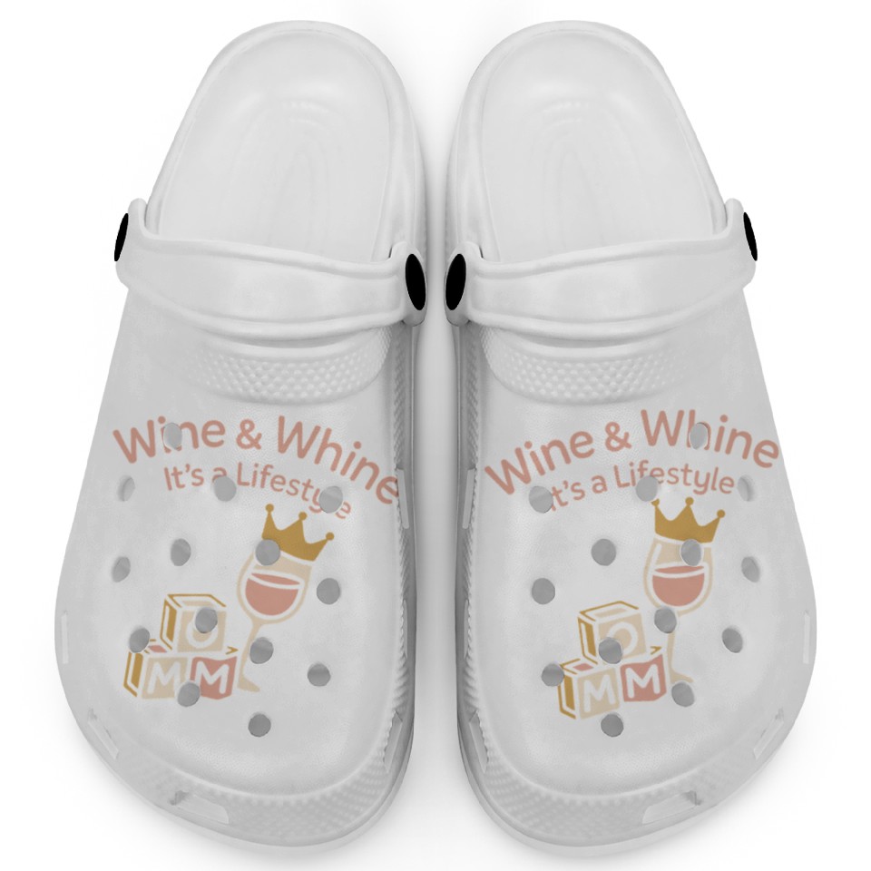 The item hot trend you're looking at is Single Mom Life Chaos Coordinator Wine Coffee Clogs For Kids WHITE belong theme Clogs at Printblur