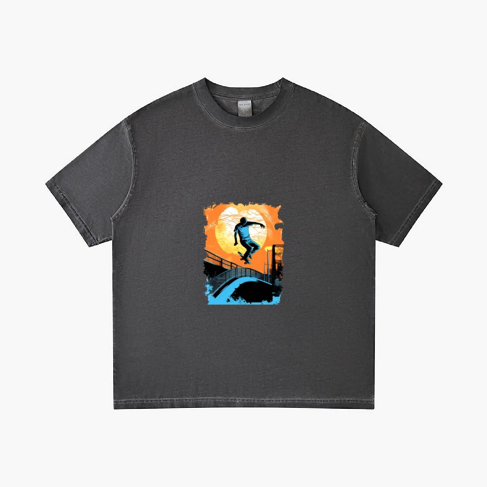 You're taking a peek at the product Skateboarding Skateboarder Tricks on Ramps Gradient T Shirts For Men Washed Black belong theme Gradient T-Shirts at Printblur